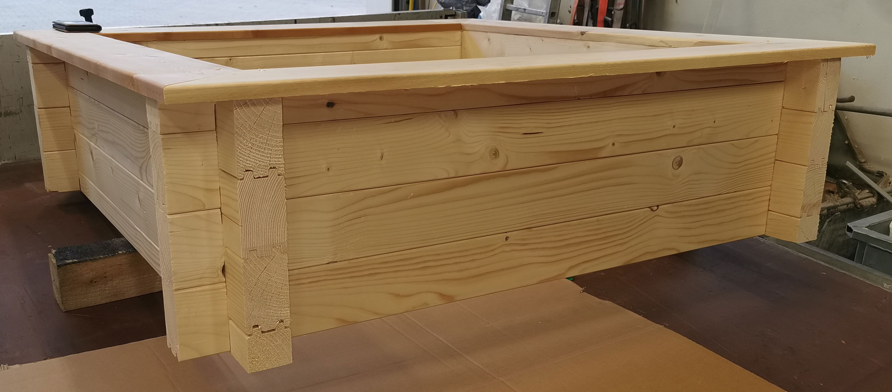 Aus der Fertigung unserer Powermat 700 können wir mit Blockbohlen schöne und stabile Teile Herstellen.